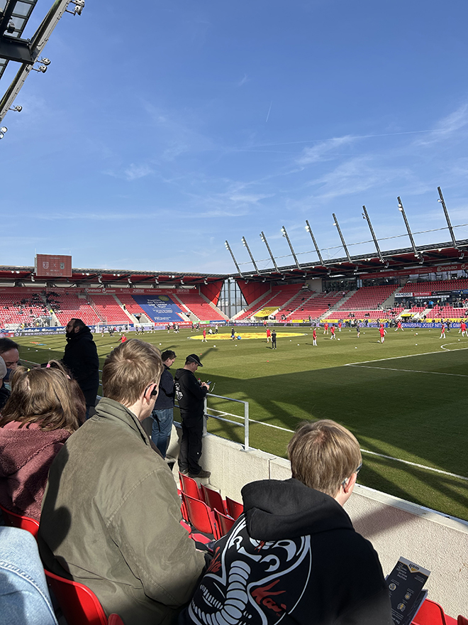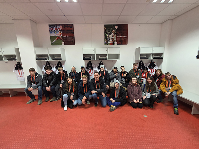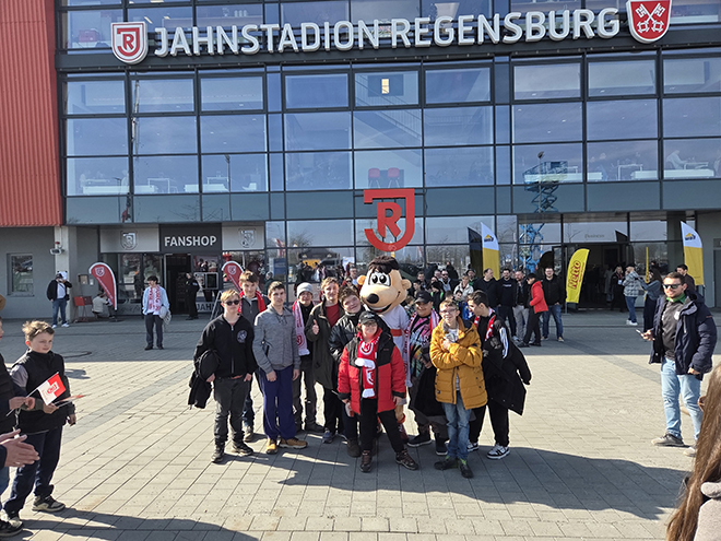 Am Samstag, den 28.02.2026, sind wir zusammen nach Regensburg gefahren. Wir waren beim Fußballspiel vom SSV Jahn. Es war ein sehr schöner Tag.