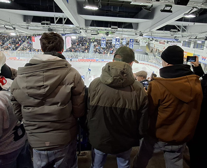 Im Rahmen einer Tagesstättenmaßnahme sind 10 Jungs der Tagesstätte mit vier Betreuerinnen sowie Betreuer ins Eishockeyspiel der Straubing Tigers gegen die Wolfsburg Grizzlys gefahren.