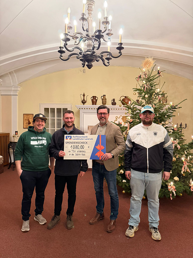 Martin Zaha, Phillip Brunner und Thomas Winklmeier überreichten uns im Namen des TSV Wildenberg eine großzügige Spende in Höhe von 1.080 € aus dem Erlös der Versteigerung.
