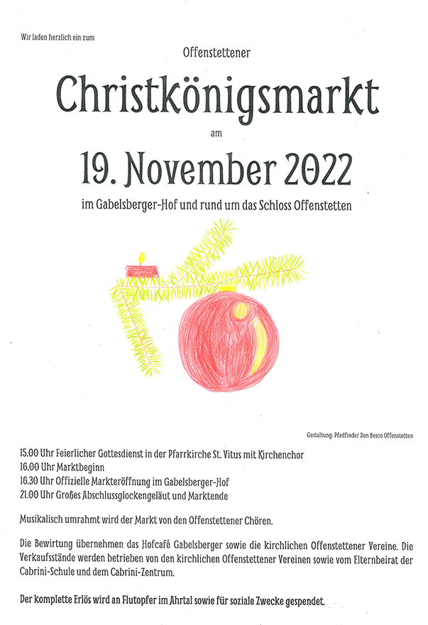 Wir laden herzlich ein zum Offenstettener Christkönigsmarkt