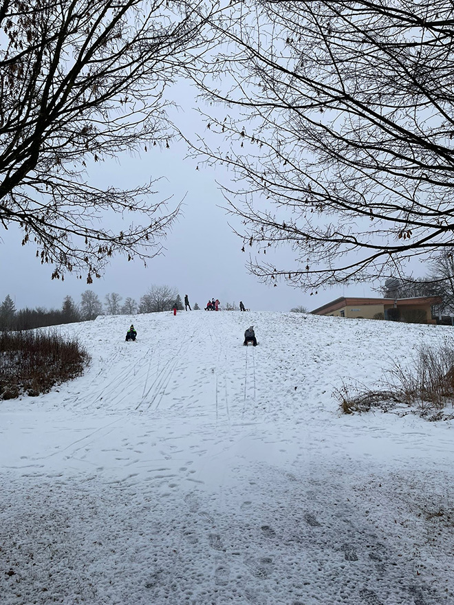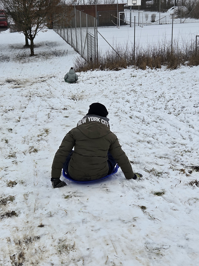 Was für ein Glück wir haben: Wir müssen gar nicht weit fahren, um Wintersport zu treiben. Unser „hauseigener Berg“ direkt am Schulgelände verwandelte sich in eine perfekte Rodelbahn. Mit großen Augen und voller Vorfreude packten die Schülerinnen und Schüler ihre Schlitten und Popo-Rutscher ein.